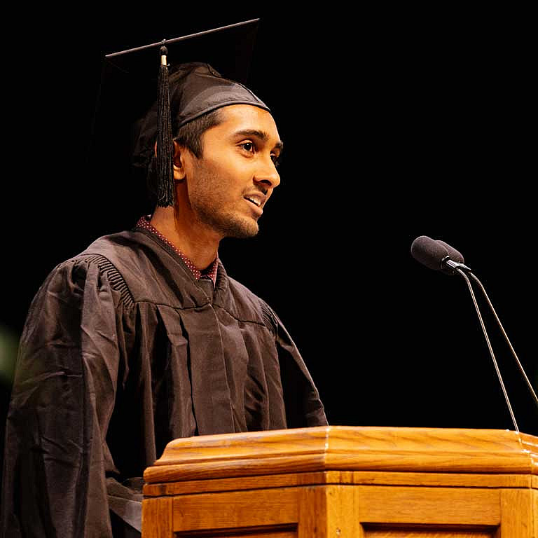 Molecular life sciences and neuroscience double major. Economics minor. Co-president of the Intra Collegiate Emergency Medical Service at IU, also known as IC-EMS. Ambassador for the College of Arts and Sciences. Adhitya Balaji (’23) is all of these things, and he approaches his studies with the drive that a future medical student needs in order to be successful. He has mixed and matched his university experiences to give himself opportunities and options that don’t exist at other universities and liberal arts and sciences programs.