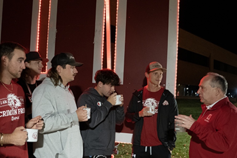IU Columbus attendees also enjoyed a hot cocoa bar with whipped cream, mini marshmallows and peppermint toppings, as well as IU sugar cookies. Plus, the first 50 people to join the festivities got to bring home a Crimson Pride campfire mug.