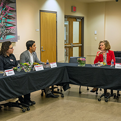 Students shared how faculty have been vital to keeping them involved through coursework and help to make the campus a welcoming environment. There was an exchange of ideas on what the campus or university could do to help students get more involved on campus or university-wide; and what their interests were following graduation.