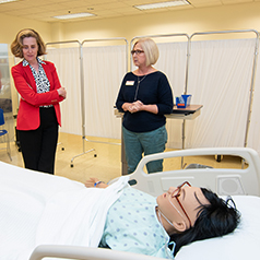 Karen Clark, dean of the School of Nursing and Health Sciences, led the tour through the nursing laboratories along with Shelly Burns and Gloria Dixon, clinical assistant professors.