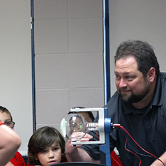 There were 52 stations led by 28 faculty, staff and students from all five academic schools and Whitewater Broadcasting Examples of included are virtual reality demonstrations, astronomy, physics, health with germ fighters, Anatomage table, science lab, manufacturing, making music and lyric writing, investigation station and detective riddles, teamwork challenges, math games, news reporting and live on set at WCTV.