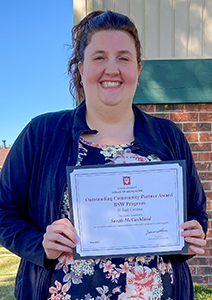 Sarah McCashland, program coordinator for the Healthy Start Grant at Centerstone, is this year’s individual winner. McCashland, B.S.W. 2011 and M.S.W. 2014, was recognized for her dedication to the School of Social Work and as a volunteer field instructor.