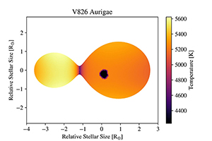 “Moreover, the stars have different surface temperatures with a 400°F difference,” Tobin said. “The distance between them is so small that the stellar surfaces touch each other and allow stellar material to flow back and forth between them. This appears very much as if the pair are in a warm embrace.”