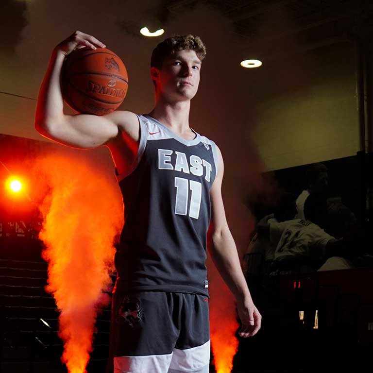 Tim Scales, who is the director of the Center for Entrepreneurship at IU East, is in possession of the reminders from the basketball career of 2024 graduate Colt Meyer.