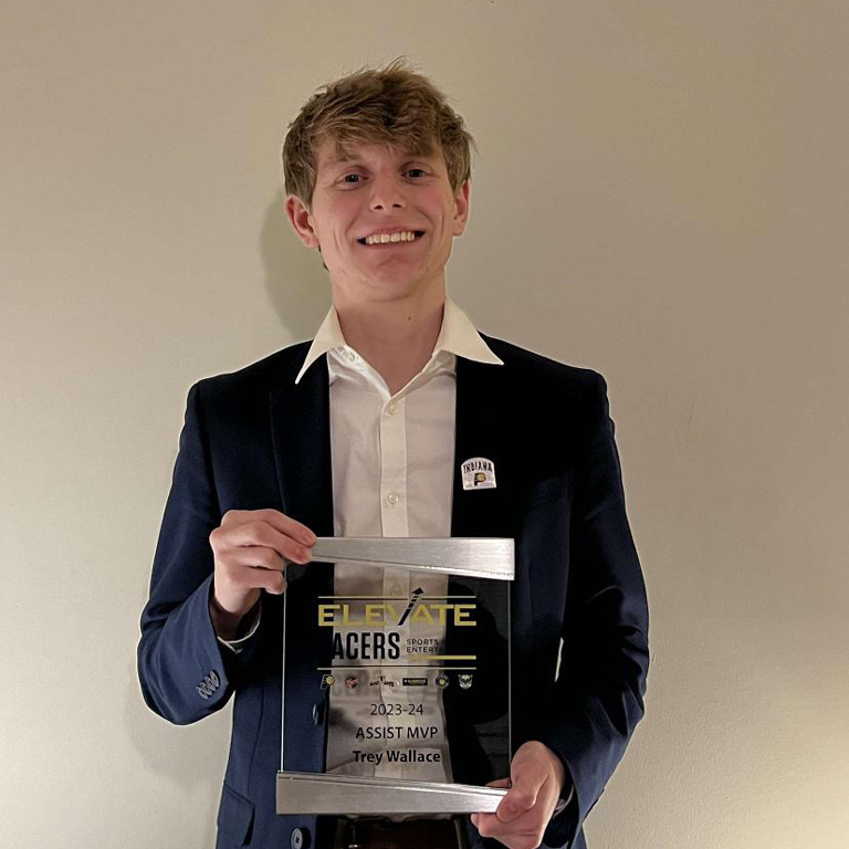 One of Trey’s most transformative experiences came from working with the Indiana Pacers. It all started with a simple conversation during a Sports Management Club meeting, where he participated in a mock interview. One of the interviewers, a Pacers employee, was struck by Trey’s passion, enthusiasm, comprehensive knowledge, and deep-rooted connection to the team and the sports industry. Impressed by his readiness and potential, the conversation evolved into a job offer to work behind the scenes at Pacers games and other events at Gainbridge Fieldhouse.