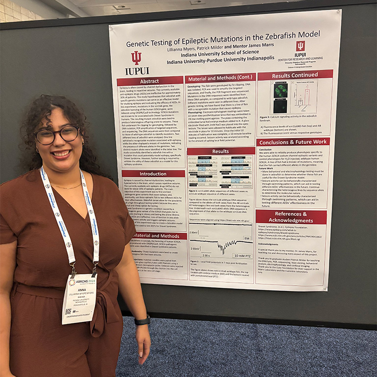 From the moment Anna stepped foot on the IU Indianapolis campus as a freshman, she was drawn to the ground-breaking world of research. Her first step in this direction was through the Diversity Research Scholar Program and the Bepko Scholar Honors Program, which have provided her with invaluable support and opportunities. In fact, the Diversity Research Scholar Program became a cornerstone of her undergraduate experience, pairing her with a principal investigator and immersing her in a community of like-minded individuals. “It really helps you prepare for grad school, connect with other people, and grow as a scientist,” she shared, reflecting on how the program reaffirmed her passion for research.