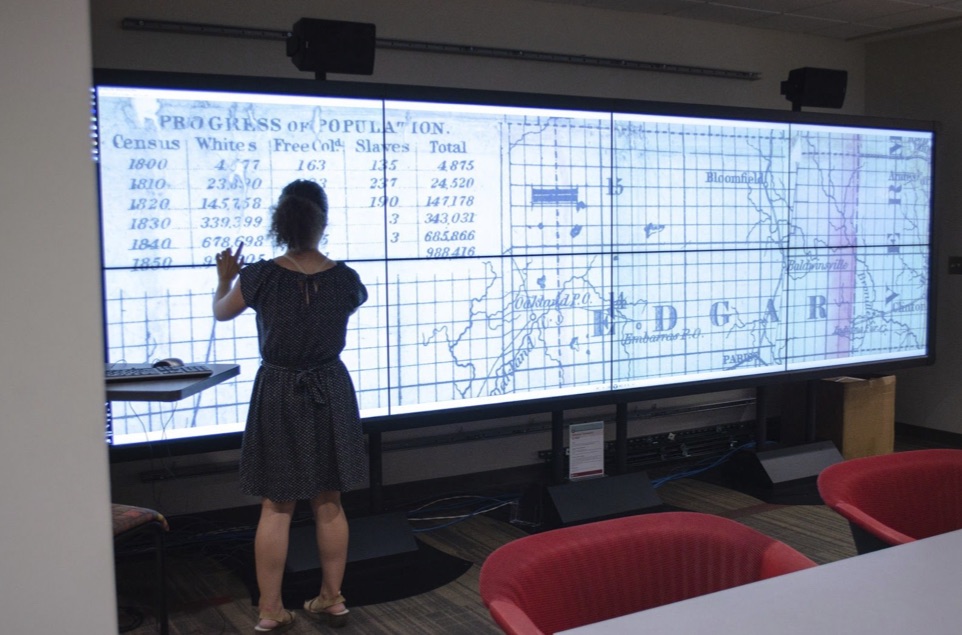 Kalani Craig of the Institute for Digital Arts and Humanities (IDAH) reports a notable improvement in speed and responsiveness for the new Scholars’ Commons IQ-Wall. Craig notes, “Having a large-scale display that breaks into lots of smaller pieces has become a central piece of IDAH’s consulting workflow. In fact, we’ve even been able to do more effective Zoom-based consulting for IU folks who are scattered to the wind by combining the new video capabilities with the split-screen approach.”