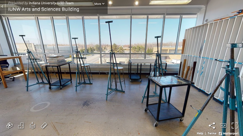 The IU Northwest (IUNW) Arts and Sciences building, which opened in 2017, houses classes for the College of Arts and Sciences. This building is the biggest scan the IU3D team has completed to date. Some of the interesting features of this building include two theaters, machine rooms, and clay sculpting rooms. There are 870 different scan locations for this building and it took approximately three days to complete. Explore the IUNW Arts and Sciences Building via the IU3D Hub.