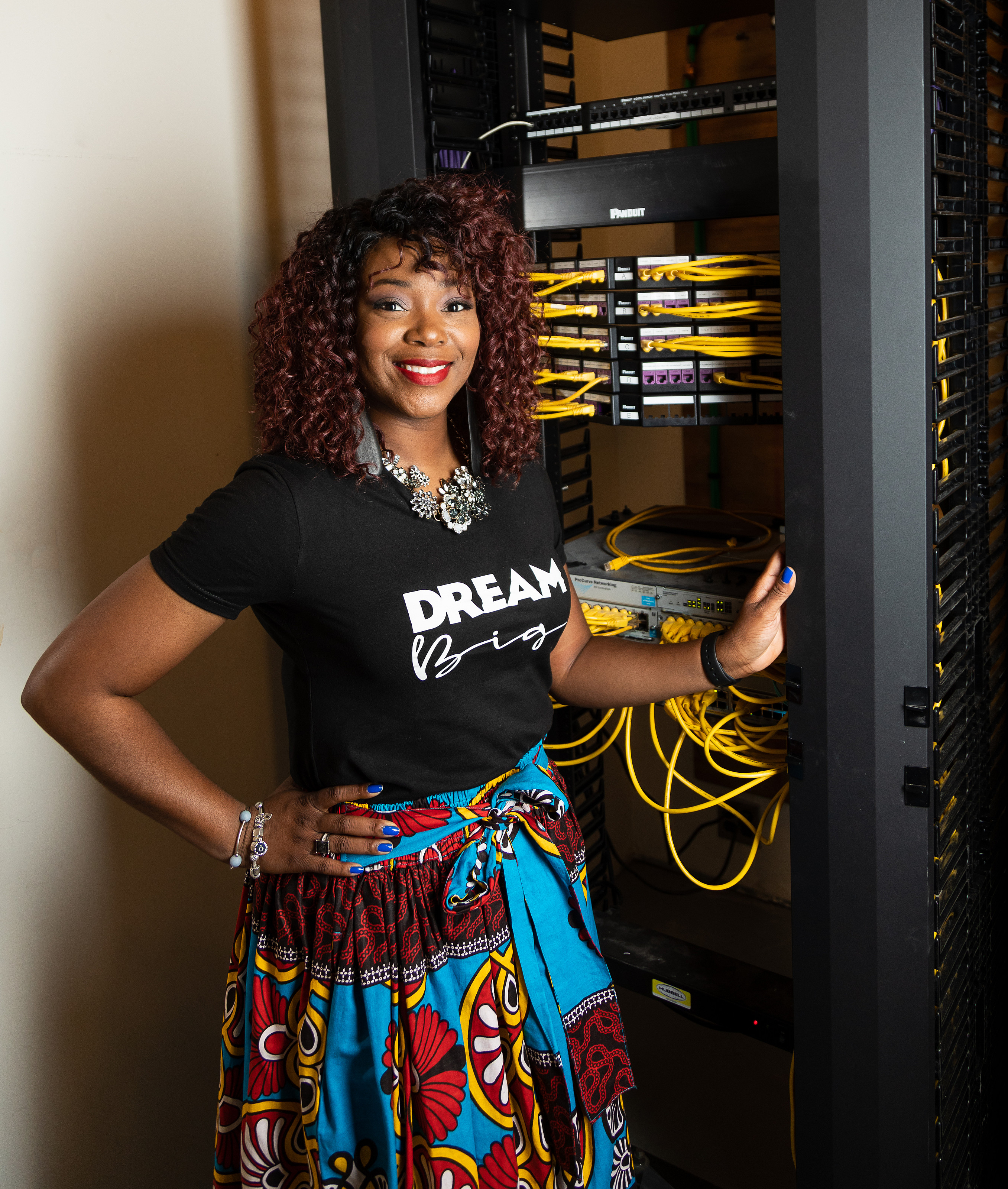 Clearly a gifted student, a year before she graduated she was hired as the IT operations manager for the city of Gary, managing a three-person office. During her one-year tenure, she developed an intranet for city employees and worked with AT&T to switch the city’s phone systems to a Voice Over Internet Protocol. Some of her favorite responsibilities took her out of the office and into the community: fixing the computers in police squad cars and installing internet at the air traffic control tower at Gary/Chicago International Airport.