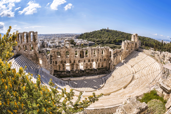 The new space is inspired by ancient Greek amphitheatres, like the one seen here, which featured seats on all sides of the stage.