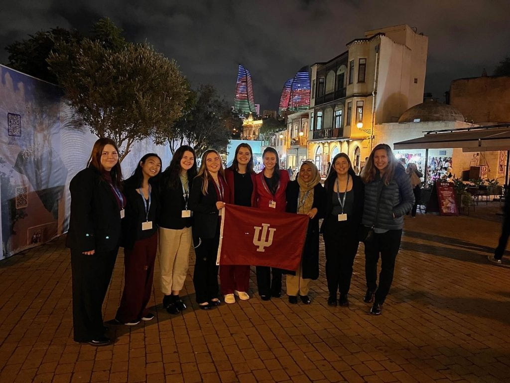 It was through my coursework that I had the academic background needed to be proficient in my research, and my experience at IU Global that gave me the confidence and professional skills needed take on the rigorous process of preparing to attend COP29. I was honored to be selected as one of the 16-person delegation of undergraduate, graduate, and PhD students, who Dr. O’Reilly introduced to the field of international climate governance in an academic course ahead of the actual trip to Azerbaijan.