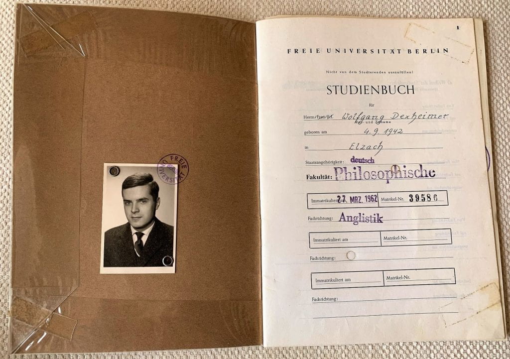 Dexheimer arrived at Indiana University as an exchange student from Freie Universität Berlin in 1963. Based on his academic and personal qualifications, he was selected as one of twelve students to participate in the German university’s transatlantic exchange program. When he initially applied to study in the United States, he expected it to be at the University of Pennsylvania but was later informed that he would be going to IU instead. This change of plans didn’t stop him from following through with his goal of exploring educational opportunities abroad.