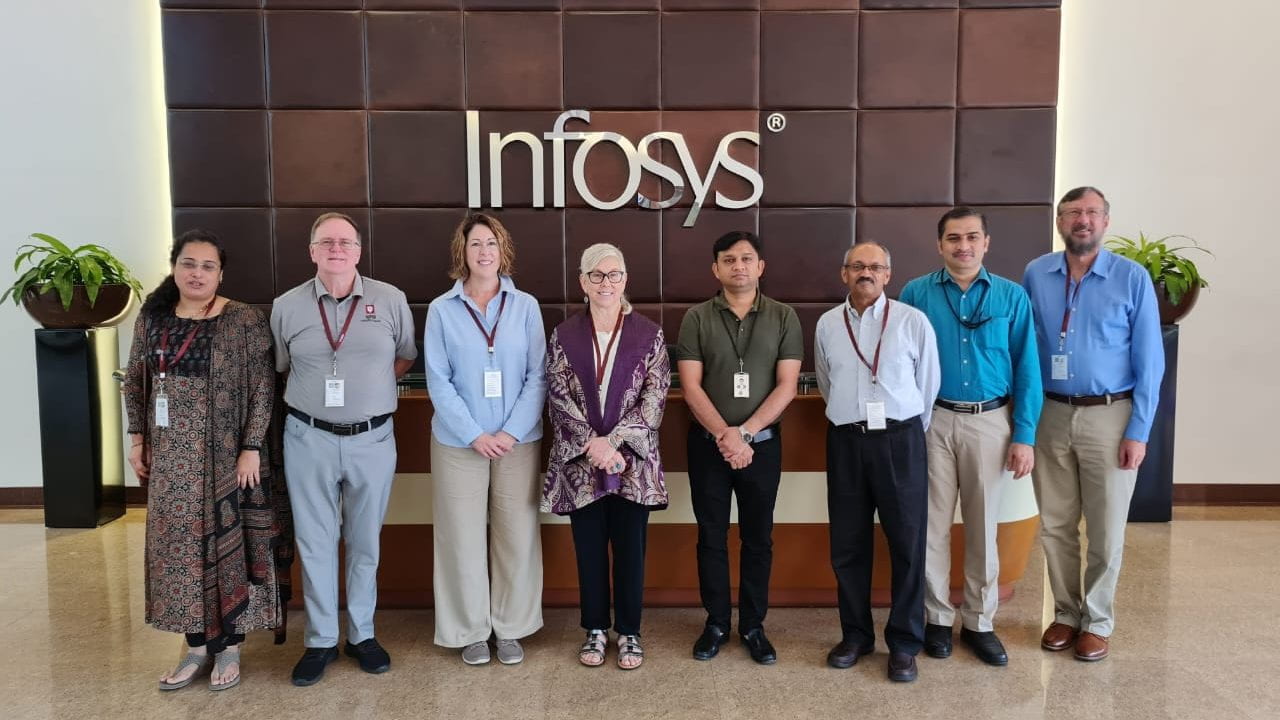 Connections were also made outside of the realm of higher education, with a focus on the informatics industry with a visit to Infosys worksites. The team learned about various action plans and efforts to make Infosys carbon neutral as well as leaders in the industry to achieve various SDG goals. Ken Carow says that meetings with Infosys representatives at their educational facilities in Indianapolis, Bengaluru, and Mysuru will pave ways to how IUPUI and Infosys can work together to provide professional development for their employees as well as enhancing career opportunities for IU students.