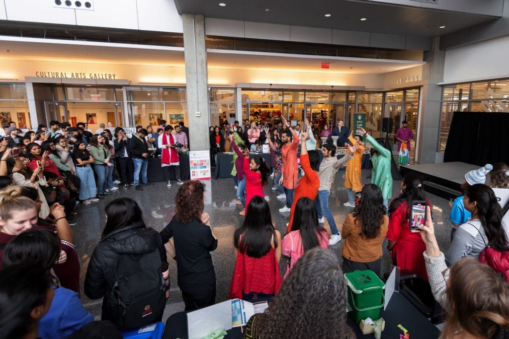 After two years of virtual and hybrid events, the energy and excitement of an in-person celebration of the Indianapolis campus’ global community returned for the 2023 IUPUI International Festival. On February 14, 2023, the Campus Center once again buzzed with the chatter of countless student organizations, the vibrance of live international music, the smells of food from around the world, and the joy of people connecting. Though the event has been held for over 15 years, this was the first time since 2020 that it could return to its full capacity.