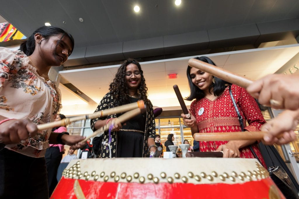 Graduate student Mounisha of DesiJags echoed that enthusiasm. In her first semester as an international student from India, she shared “I’m feeling very excited to see each and every country flag represented here. No one gets an opportunity to know about different kinds of cultures and different types of countries just in one place! But I got the opportunity to!”