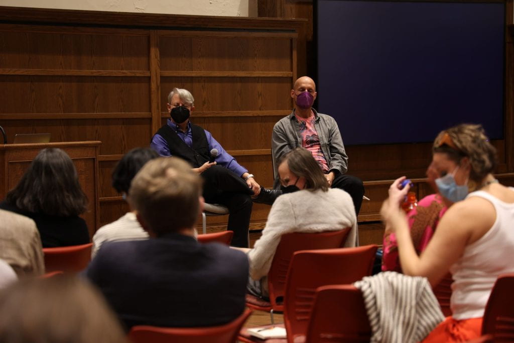 “I cannot believe we were able to bring such an exquisite group people to IU Bloomington,” Kovacs said in a recent interview. In addition to the aforementioned playwright Kevin Rittberger and University of Santa Cruz Professor of Feminist Studies, Philosophy, and History of Consciousness Karen Barad, the conference brought transdisciplinary Brazilian artist Luiza Prado, French-Senegalese playwright Penda Diouf, media theorist McKenzie Wark, and theatre scholars like Rebecca Schneider, Tavia Nyong’o, and Ulf Otto, and more together to respond to Rittberger and Barad’s work. While the sheer volume of talent and critical thought alone is noteworthy, this conference marked a momentous occasion not only for Rittberger himself, but a unique opportunity for the IU campus.