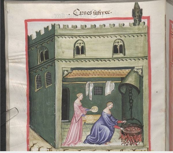 Being in Bologna also exposed me to unexpected research. Part of my research studies illuminations of women in cooking scenes. When I was in Bologna I learned about a manuscript titled Tacuinum Sanitatus. This manuscript was created in northern Italy, but written in Latin. As I am generally an Iberian scholar examining manuscripts from Iberia or in an Iberian language, this manuscript had escaped my notice. Yet, there are numerous images of women not just cooking but also in the field harvesting crops alongside men. This manuscript clearly demonstrates women’s agency in Mediterranean food culture.