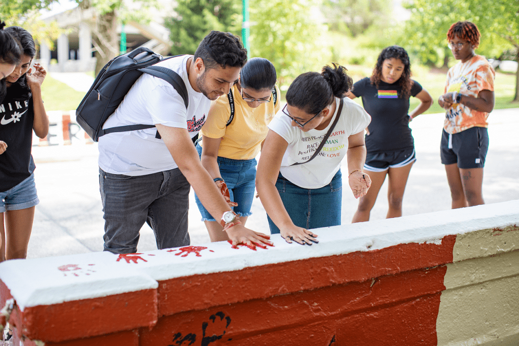 Bloomington international students kicked off their experience with a tailgate in Dunn Meadow, hosted by Residential Programs and Services (RPS), with food trucks and inflatable obstacle courses. Subsequent days featured an ice cream social, international trivia in the Indiana Memorial Union (IMU), and an opportunity to continue one of IU’s traditions –painting the campus bridge on Eagleson Avenue. Bloomington’s First Year Experience (FYE) Welcome Week also featured zip lining and roller skating at Welcome Back Late Nite, and movie screenings in the IU outdoor pool.