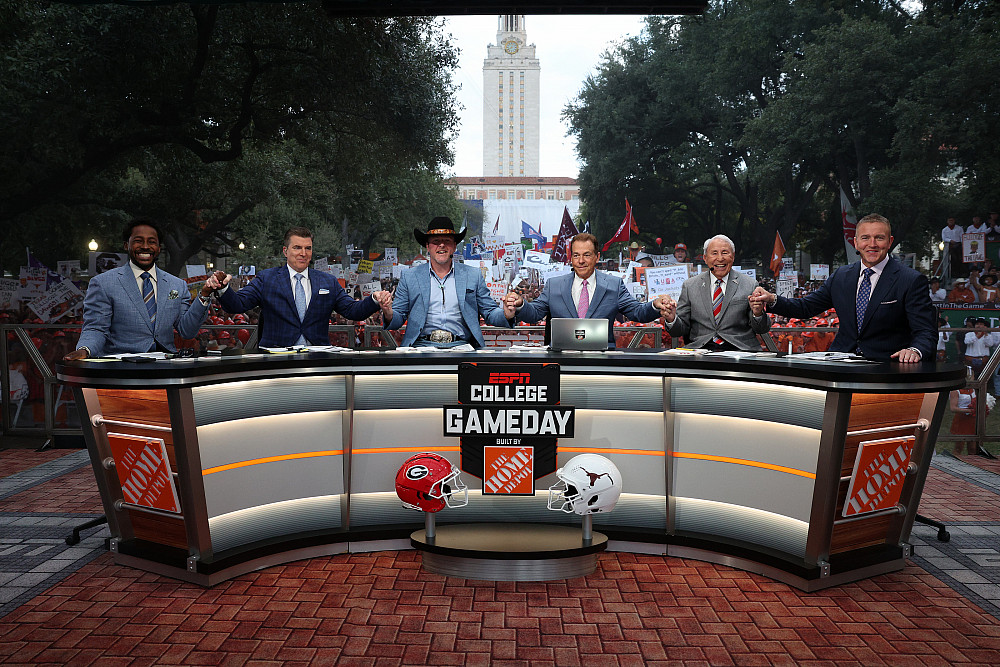 <picture class="lw_image"> <source media="(max-width: 500px)" type="image/webp" srcset="/live/image/scale/2x/gid/2/width/500/15825_ESPN_College_GameDay_AK2_9731.rev.1731104079.webp 2x, /live/image/scale/3x/gid/2/width/500/15825_ESPN_College_GameDay_AK2_9731.rev.1731104079.webp 3x" data-origin="responsive"/> <source media="(max-width: 500px)" type="image/jpeg" srcset="/live/image/scale/2x/gid/2/width/500/15825_ESPN_College_GameDay_AK2_9731.rev.1731104079.JPG 2x, /live/image/scale/3x/gid/2/width/500/15825_ESPN_College_GameDay_AK2_9731.rev.1731104079.JPG 3x" data-origin="responsive"/> <source media="(max-width: 800px)" type="image/webp" srcset="/live/image/scale/2x/gid/2/width/800/15825_ESPN_College_GameDay_AK2_9731.rev.1731104079.webp 2x, /live/image/scale/3x/gid/2/width/800/15825_ESPN_College_GameDay_AK2_9731.rev.1731104079.webp 3x" data-origin="responsive"/> <source media="(max-width: 800px)" type="image/jpeg" srcset="/live/image/scale/2x/gid/2/width/800/15825_ESPN_College_GameDay_AK2_9731.rev.1731104079.JPG 2x, /live/image/scale/3x/gid/2/width/800/15825_ESPN_College_GameDay_AK2_9731.rev.1731104079.JPG 3x" data-origin="responsive"/> <source media="(min-width: 801px)" type="image/webp" srcset="/live/image/scale/2x/gid/2/width/1000/15825_ESPN_College_GameDay_AK2_9731.rev.1731104079.webp 2x, /live/image/scale/3x/gid/2/width/1000/15825_ESPN_College_GameDay_AK2_9731.rev.1731104079.webp 3x" data-origin="responsive"/> <source media="(min-width: 801px)" type="image/jpeg" srcset="/live/image/scale/2x/gid/2/width/1000/15825_ESPN_College_GameDay_AK2_9731.rev.1731104079.JPG 2x, /live/image/scale/3x/gid/2/width/1000/15825_ESPN_College_GameDay_AK2_9731.rev.1731104079.JPG 3x" data-origin="responsive"/> <img src="/live/image/gid/2/width/1000/15825_ESPN_College_GameDay_AK2_9731.rev.1731104079.JPG" width="1000" height="667" alt="Desmond Howard, Rece Davis, Nick Saban and Kirk Herbstreit, on the set of College GameDay at the University of Texas on Oct. 19, discuss ..." srcset="/live/image/scale/2x/gid/2/width/1000/15825_ESPN_College_GameDay_AK2_9731.rev.1731104079.JPG 2x, /live/image/scale/3x/gid/2/width/1000/15825_ESPN_College_GameDay_AK2_9731.rev.1731104079.JPG 3x" data-max-w="3200" data-max-h="2133" data-optimized="true"/></picture>