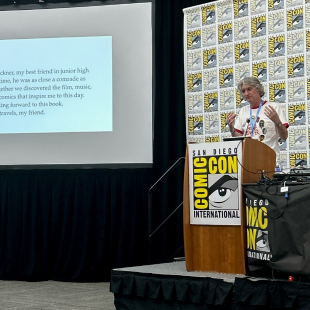 Comics aren’t just unique sequential artwork, panels, word balloons, captions and compelling story lines that often involve superheroes. They go much deeper than that, and John Walsh, associate professor of Information and Library Science, at the Luddy School of Informatics, Computing, and Engineering, explored that with his presentation, The Comic Book Paratext, at the Comics Arts Conference, an academic component of the prestigious Comic-Con International 2023 in San Diego, California.