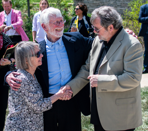 The Calabi-Yau Sculpture was unveiled in all its scientific complexity and beauty in front on the east lawn of Luddy Hall, and Hanson, professor emeritus of computer science, couldn’t stop smiling. Neither could his wife, Patricia Foster, IU professor emerita of biology. They radiated excitement and gratitude at the April 19 dedication of a project decades in the completing.