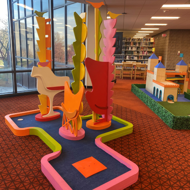 “The Mini-Golf Course Challenge reimagines the library as a campus and community space, reflective of present-day realities by welcoming all—from students and alumni to the general public—to experience our campus, art and culture,” Pacheco said.