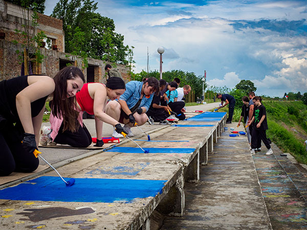 ,During my time in Croatia, we worked with an organization called PRONI, which coordinated with local high school volunteers to beautify the riverwalk along the Danube River near Vukovar. The photo I took captured these students painting stairs that had been overgrown with weeds. It was moving to see them giving their time and energy to make their community a better place. Their dedication inspired me, and I wanted to capture that moment to reflect on how people, especially the youth, can come together to create positive change.