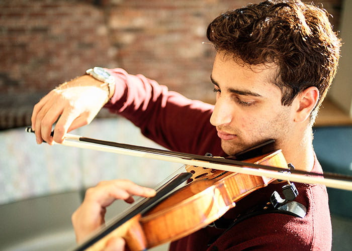 Not only is he a direct admit to one of the world’s most rigorous schools, the Kelley School of Business, but he’s also a third chair violinist for the Jacobs School of Music University Orchestra, where he’s performed in Le Nozze di Figaro and The Nutcracker.