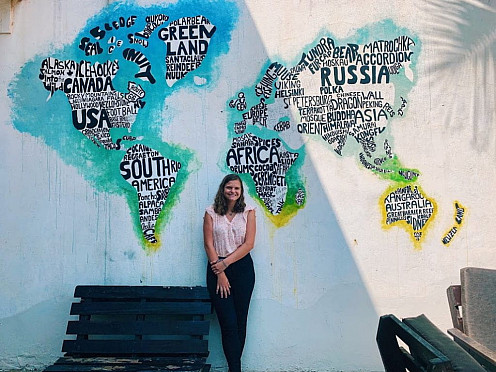 Amberly’s co-curricular involvement has included leadership roles on the IU Swim Club and as a member of the IU Journal of Undergraduate Research. In the Bloomington community, she volunteered at the Bloomington Animal Shelter and Middle Way House. She has also quite literally made her mark in the Bloomington community as a muralist, where she planned, designed, and painted a mural for the Artisan Alley Mural project.